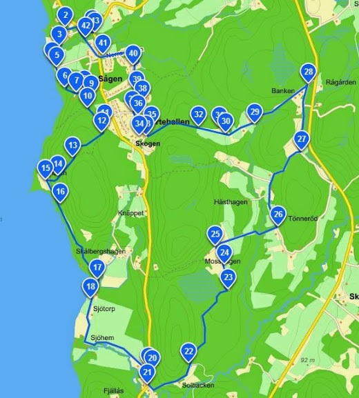 Slingan Huveröd – Sågen – Svartehallen – Inlaget – Tönneräd -Banken – Änghagen – Sågen – Oskarshem – Huveröd.