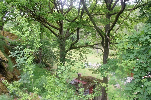Från grottöppningen kan man i fantasin se hur de två rövarbarnen rider över ängen på vildhästarna Rackarn och Vildtoringen.