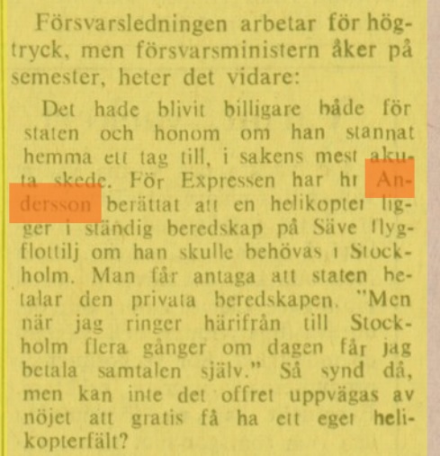 Mitt i krisen hämtade ett amerikanskt militärplan överste Åke Malmgård för att medverka med militärt samband i Washington. Malmgård arbetade på Försvarsstaben där det i ett kassaskåp fanns en hemlig pärm. I den fanns namn på officerare som i krig skulle bege sig till Natostaber, i tyska Wiesbaden bland annat. Sedan länge fanns en beredskap att i Gullmaren ta emot ett hundratal marina fartyg som flytt från anfallen i Västtyskland och grannländerna.