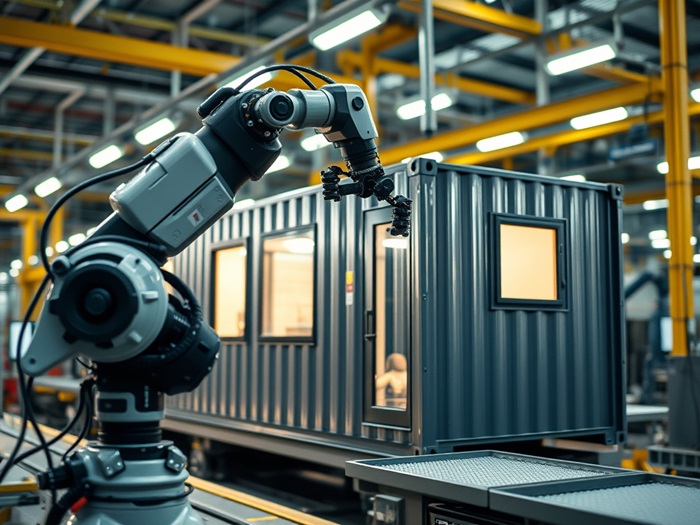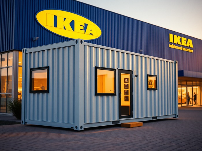 I Saabfabriken i Trollhättan bygger Ikano-Ikea containerhus för halva kostnaden, tack vare robotar och löpande band. De köps möblerade på varuhusen, ofta med fasadtillbehör som får plåthusen se ut som småländska torp.