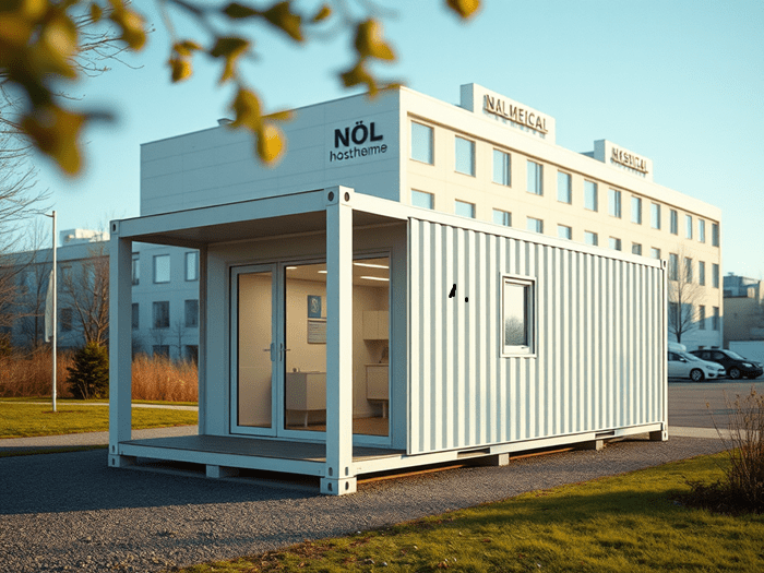 I kvarter ordnade efter åkommor. Med insprängda minikliniker, med namn som Hjärtesaken och Lårbenshalsen. Kan inte patienten ta golfbilen till storsjukhuset gör doktorn hembesök. Övervakad centralt med AI och 5G från intelligenta boxar som hakas på containerhusen.