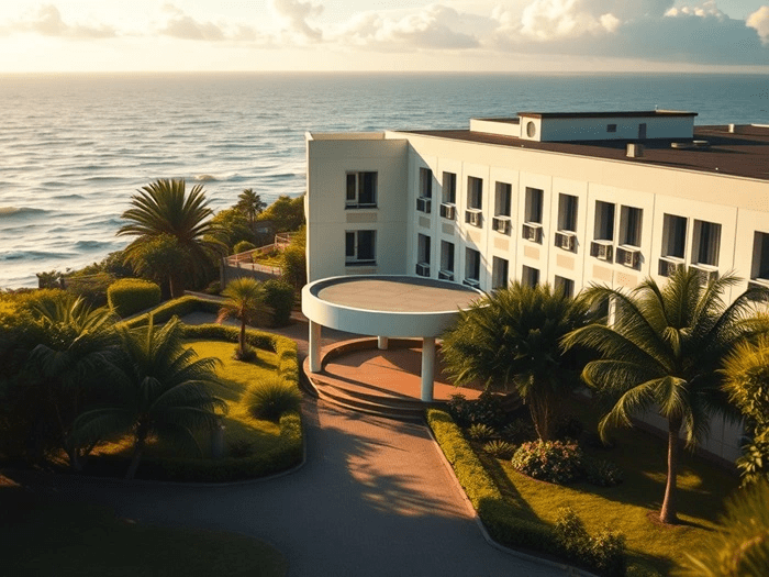 Utanför ses seniorer njuta av solen. Särskilt behaglig för reumatiker för vindarna från Indiska Oceanen håller temperaturen vid 20-30 grader året runt, trots närheten till ekvatorn. De flesta bor här ett halvår i taget, varvat andra halvan med vistelse i Sverige. I vanliga bostäder, sjukvården eller en Madeleineby som den i Nya Brätte.