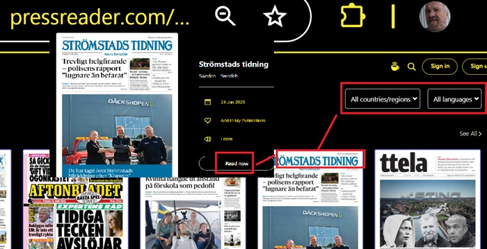 - Sök efter PressReader i deras e-resurser / digitala tjänster