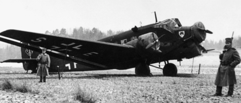 Bertil Aronsson, 17 år, var denna helg ledig från springschasjobbet och vilade på gräsmattan hemma i Ramneröd, norr om stan. Han hörde ett motorvrål och såg ett tremotorigt flygplan med Luftwaffes järnkors på vingarna. ”Det flög så lågt att jag tydligt kunde se hakkorset”. En Junker 52 konstaterade Bertil. Med två motorer på högvarv och en stillastående propeller. Tänkte man nödlanda på regementets övningsfält i Samneröd strax intill?