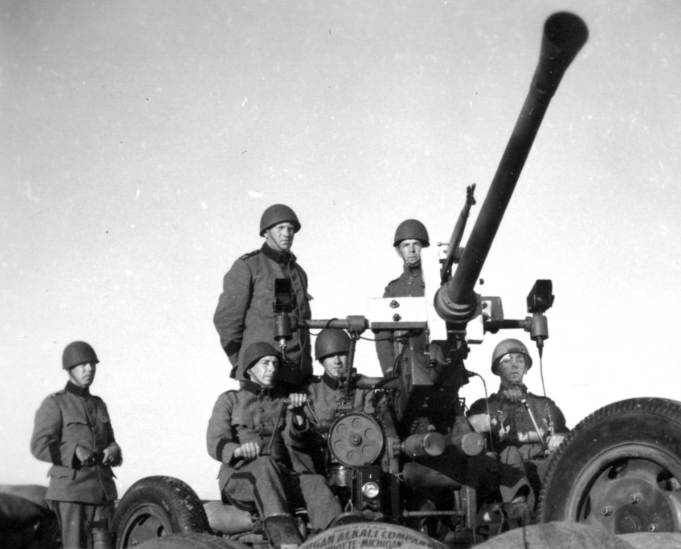 Tysken gick in i Norge 9 april 1940 och syntes vid Bohusläns gränsbommar några dagar senare. Luftwaffe flög obekymrat över norra Bohuslän för vi saknade luftvärn. Frånsett två luftvärnautomatkanoner Bofors m/36 som 13 april släpades upp på Musikberget söder om kaserngården. Drygt jobb för det var två ton tunga pjäser och en mängd 40 millimeters ammunition.