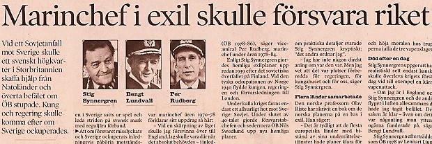 Fem högadliga vänner och Olof Palmes bror Claes skulle i motståndsrörelsen Stay Behind lotsa kungafamiljen genom Sverige till en exil i England. Kanske via Norge eller troligare från Bohuslän. Med båt från Grundsund på Skaftö tror Johan Wennström i nya boken Sveriges sak är vår.
