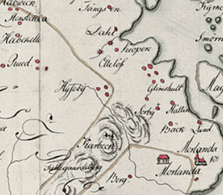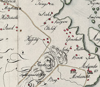 Längre fram ser han neremot Ellös kyrkoherdebostället Sörbo. Där bodde vid samma tid Lars Dahl, kyrkoherde och häxjagare innan han flydde med Gyldenlöwe till Norge.