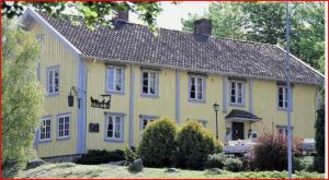 Stopp Tanums Gestgifveri . Panorama . Ät gärna våfflor i Sockenmagasinet mitt emot det över 300 år gamla Tanums Gestgifveri. Calle och källarmästare Gunther visar sig där på sid. 76 och Mellberg lunchar på sid 157 i Olycksfågeln. Här pulsar Patrik förbi på sidan 233 i Isprinsessan för att ta sig från polishuset till socialkontoret och promenerar i krökarna också på sid 211 i Olycksfågeln. (Även Stenhuggaren s 346). Sockenmagasinet ligger granne med kommunhuset där kommunalrådet Erling W Larsson styr och ställer i Fyrvakteren, sid 7, och även ekonomichefen Mats Severin. Men det var innan han var ute på Gråskär och sedan fick en kula i skallen, sid 46. Bakom Kommunhuset ligger Tanumsskolan där Per misshandlar Mattias i Tyskungen, sid 159.